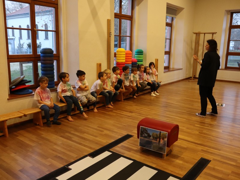 Heute fand für die Sechsecke das 1×1 der Verkehrserziehung statt. Dabei wurde mit den Kinder ausführlich besprochen, wie man sich auf dem Gehsteig bewegt, worauf man beim Überqueren der Straße achten muss.