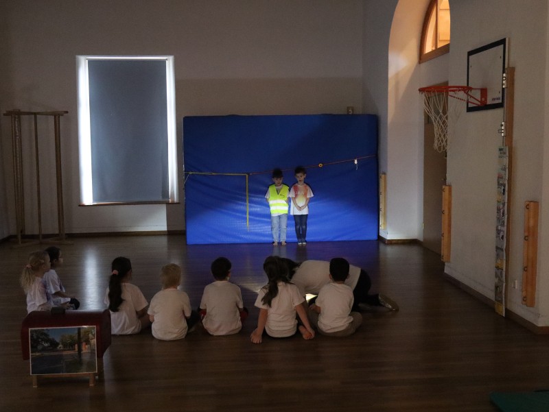 Es wurde auch mit den Kinder besprochen und ihnen mit Taschenlampen auch gezeigt wofür Reflektoren gut sind und wie wichtig es ist, dass man in der Nacht auf eine gute sichtbare, reflektierende Kleidung achtet.