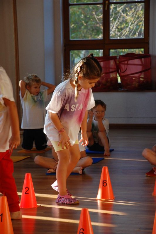 Zum Abschluss dürfen die Kinder ihr Zielvermögen testen. Mit Tennisbällen versuchen sie, Hütchen von einer Langbank zu schießen. Hierbei ist Konzentration sowie Ausdauer gefragt und sorgt für ein aufregendes Finale. Wir freuen uns, mit diesen abwechslungsreichen Spielen die Gesundheit und Fitness der Kinder zu fördern. Gemeinsam erleben wir viel Freude und Bewegung!