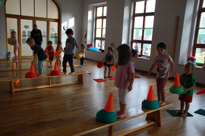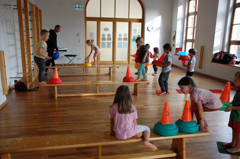 Die heutige Einheit „Kinder gesund bewegen“, stand ganz unter dem Motto „Koordination, Gleichgewicht und Teamwork“.