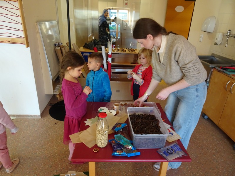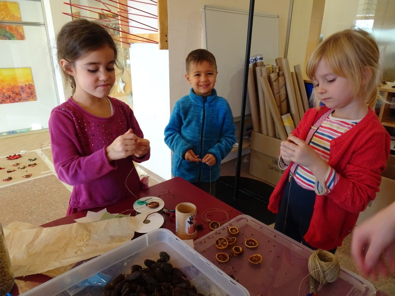 Am Donnerstag hatten die Kinder die Möglichkeit dem Advent kreativ und gleichzeitig mit ihrem Geruchssinn zu begegnen. Es wurden nämlich Ketten aus getrockneten Früchten und Gewürzen gefädelt oder Bilder geklebt.