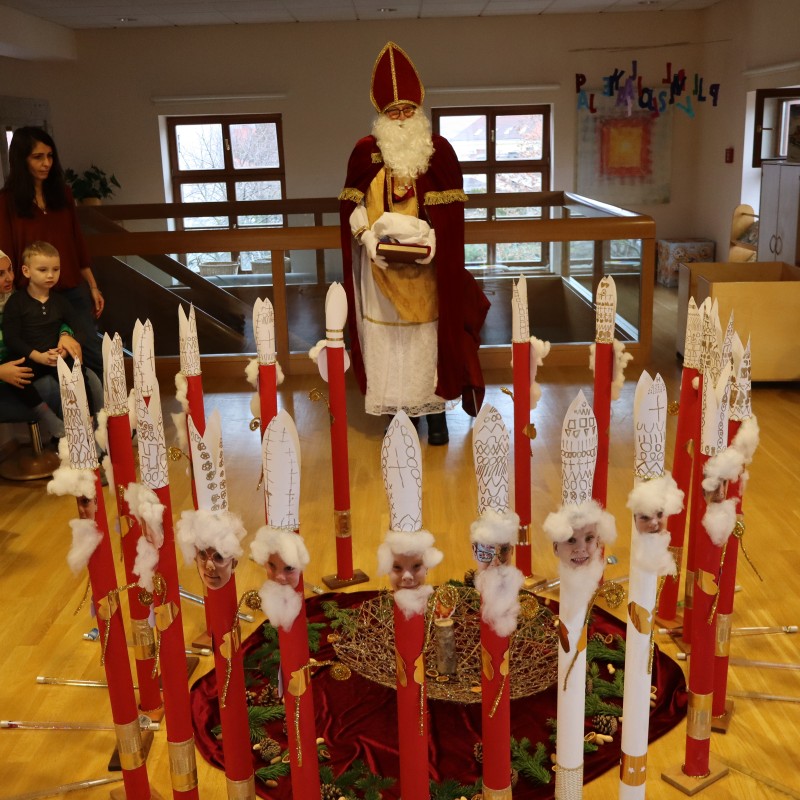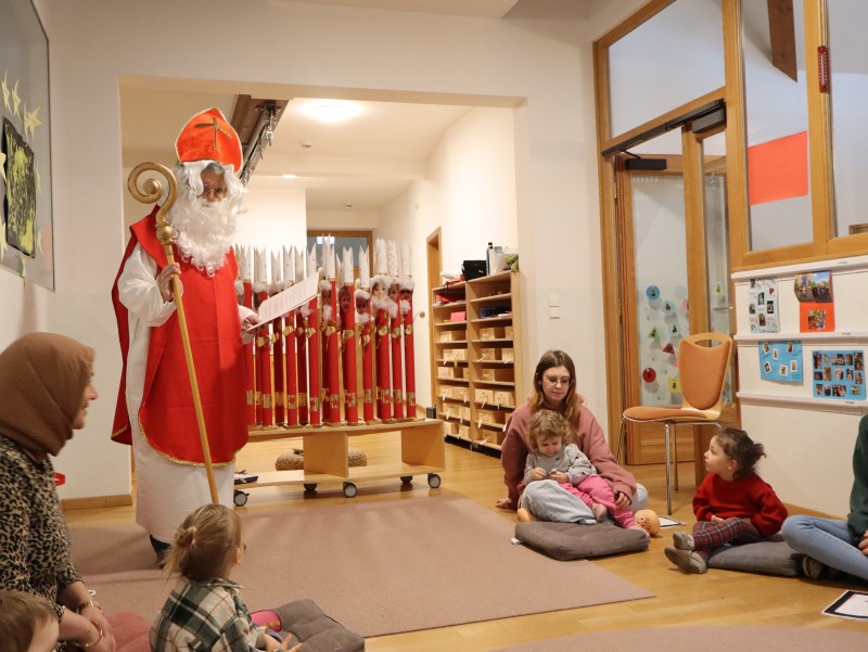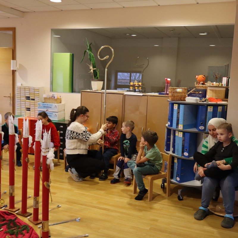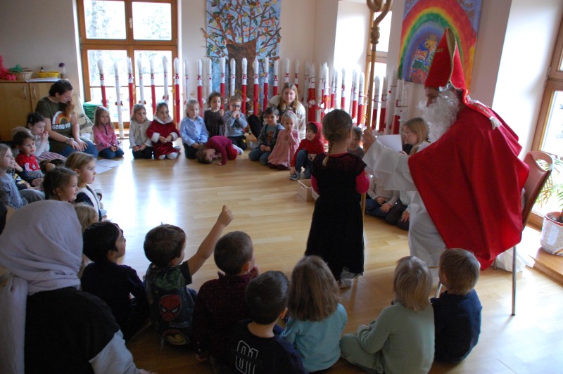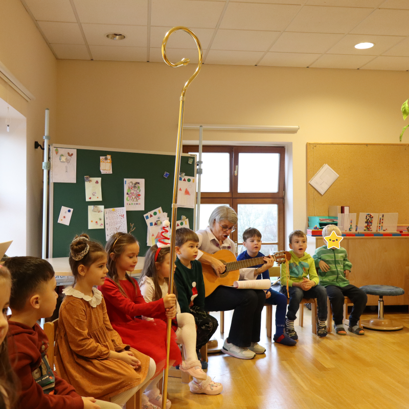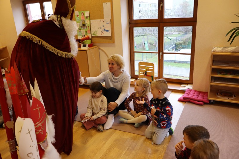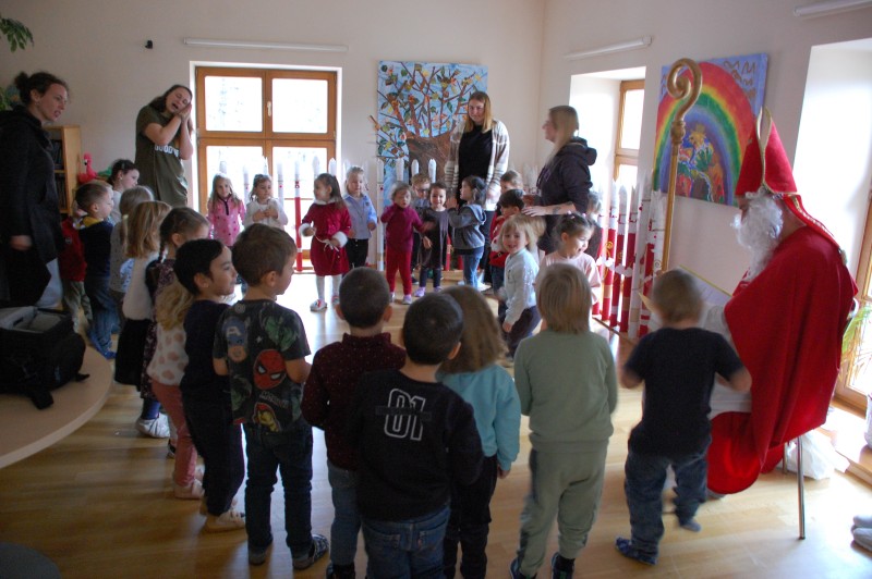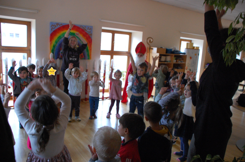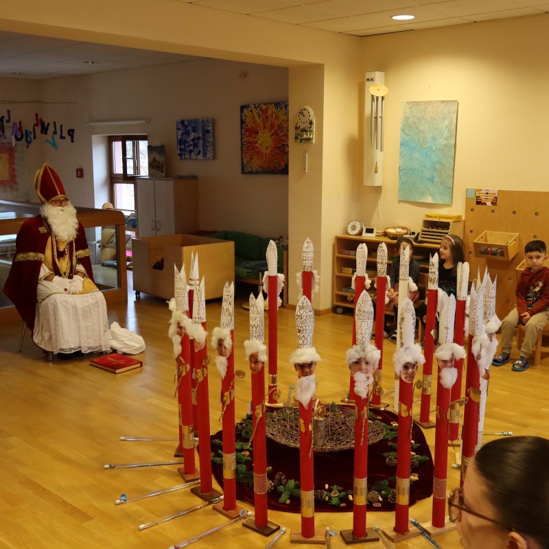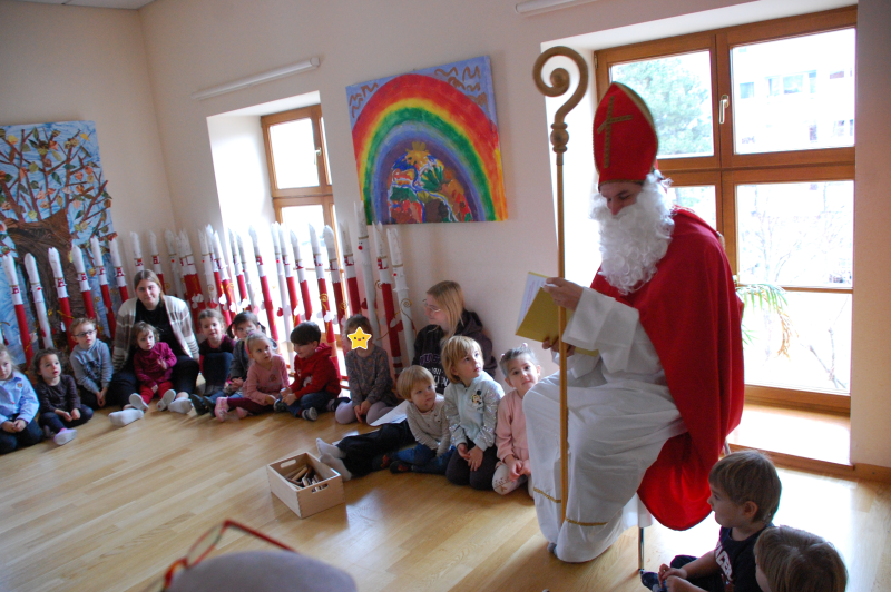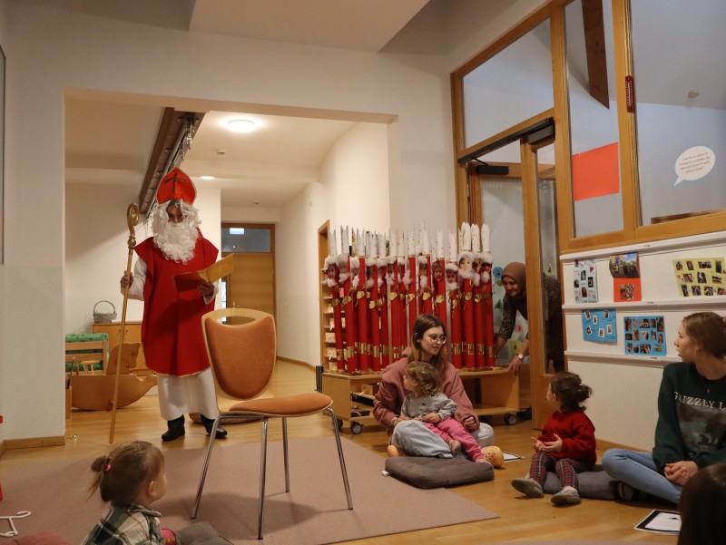 In den Gruppen gab es deshalb besinnliche Musik, Apfeljause und ruhige Gespräche und um kurz vor 10 hieß es „Wir gehen in unsere Peergroups“, denn gemeinsam wurde mit den Kindern noch der Raum gerichtet, um danach den Nikolaus herzlich willkommen heißen zu können.