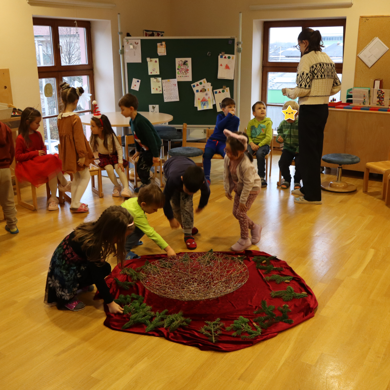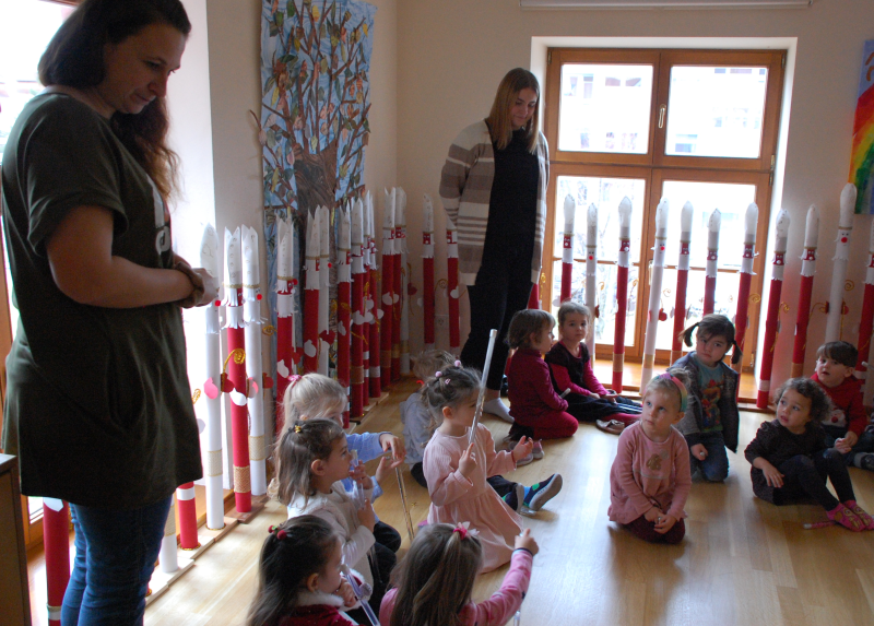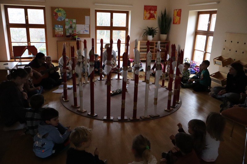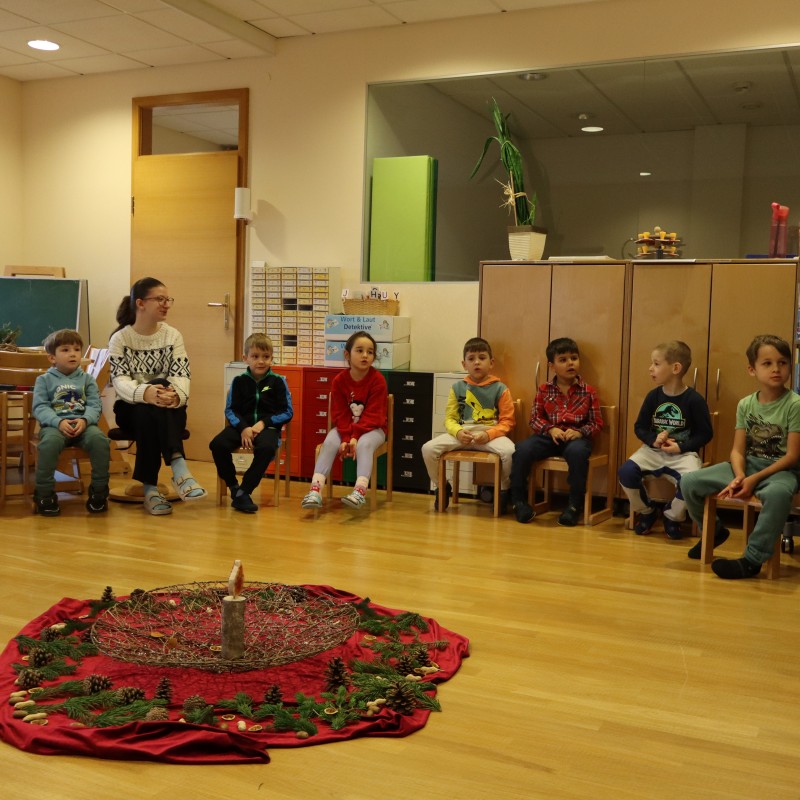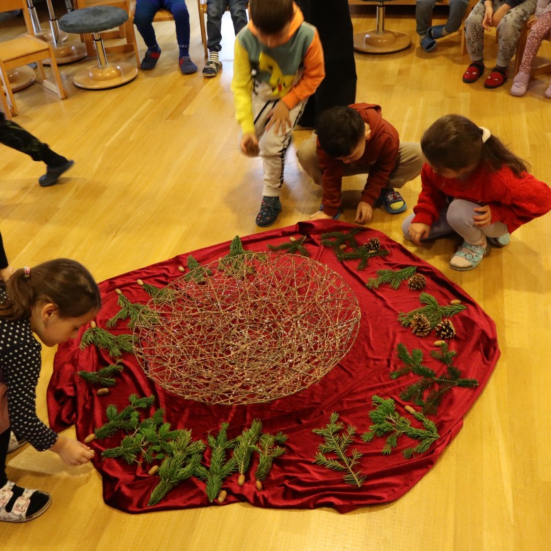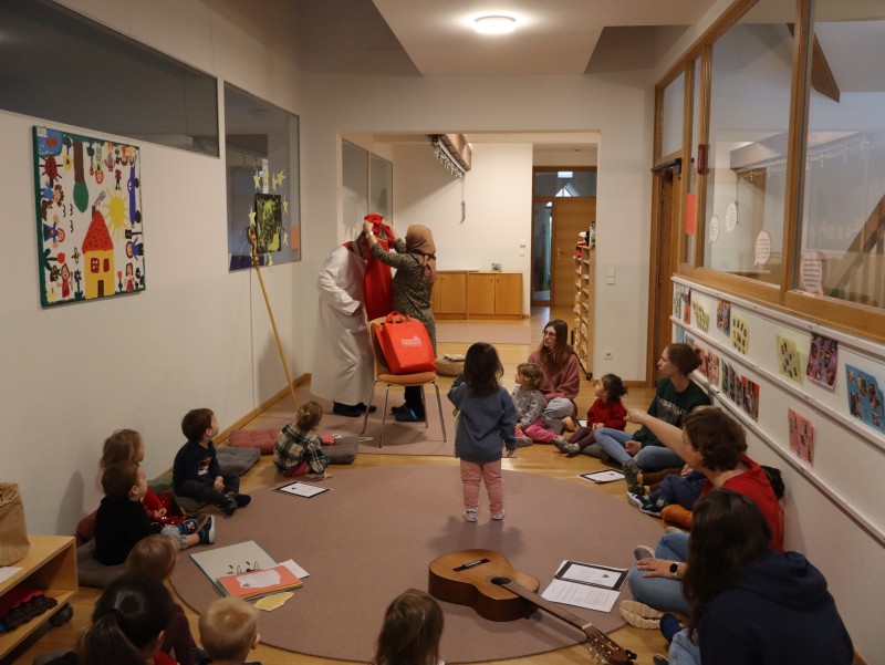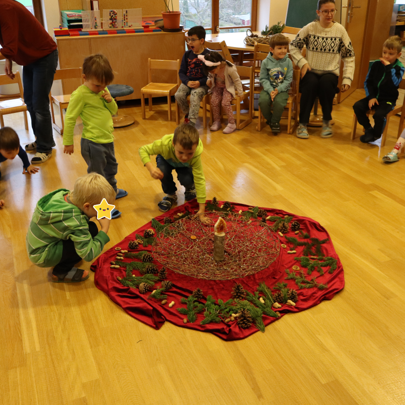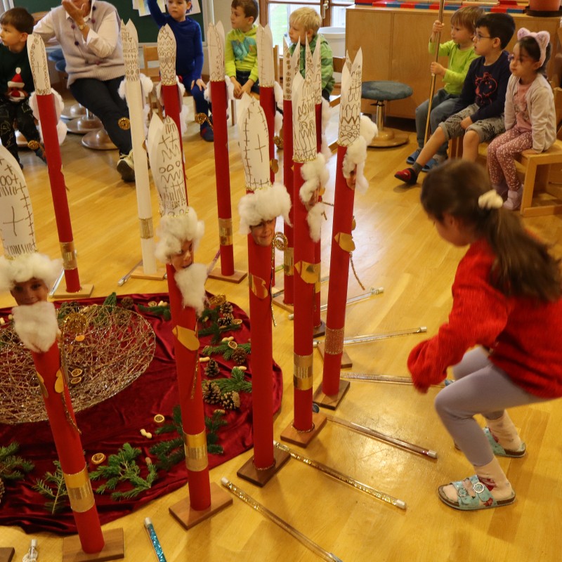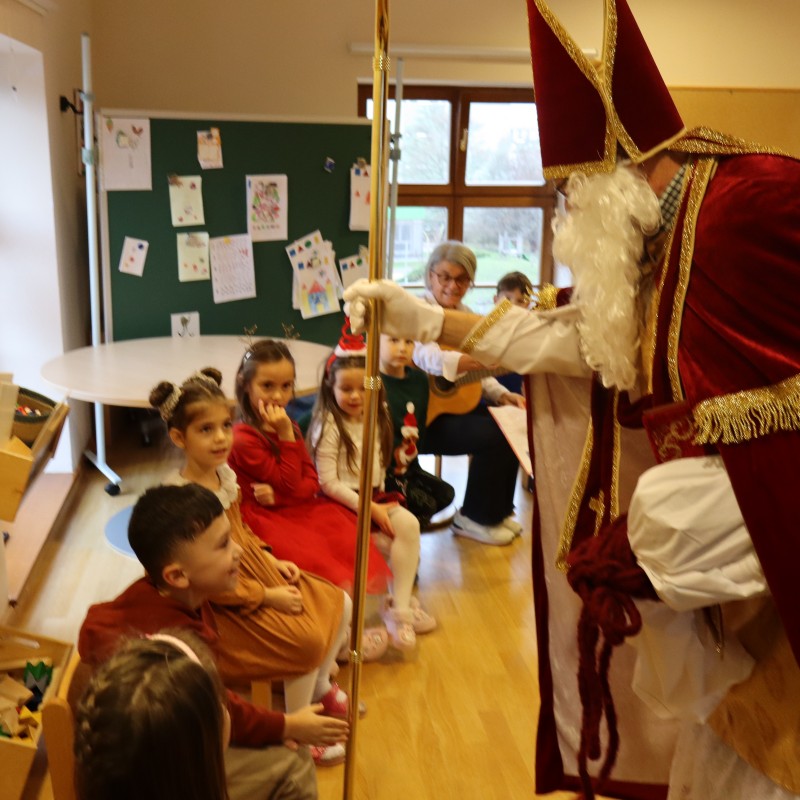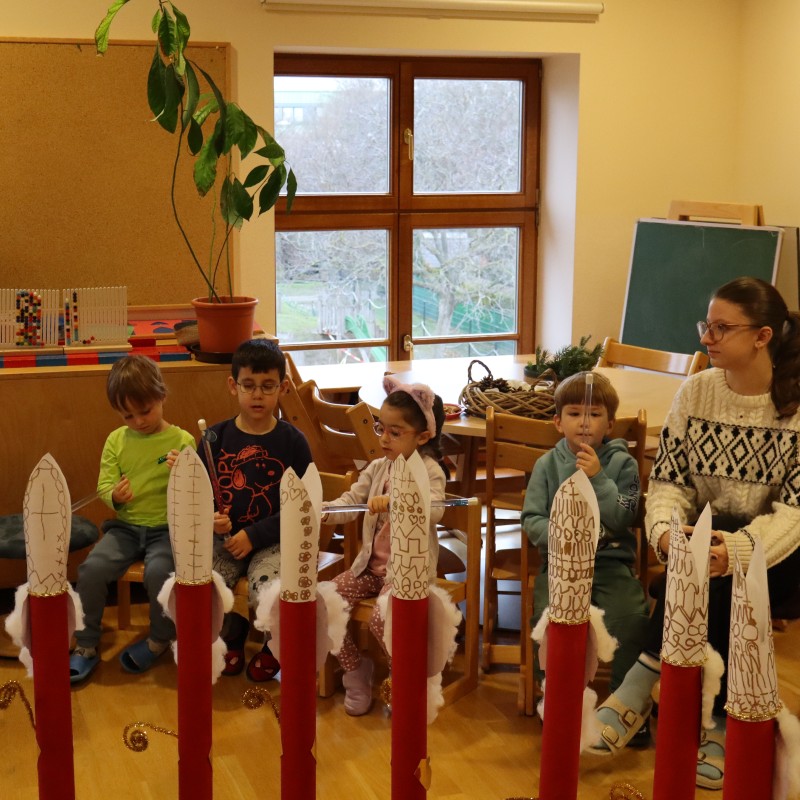 In den Gruppen gab es deshalb besinnliche Musik, Apfeljause und ruhige Gespräche und um kurz vor 10 hieß es „Wir gehen in unsere Peergroups“, denn gemeinsam wurde mit den Kindern noch der Raum gerichtet, um danach den Nikolaus herzlich willkommen heißen zu können.