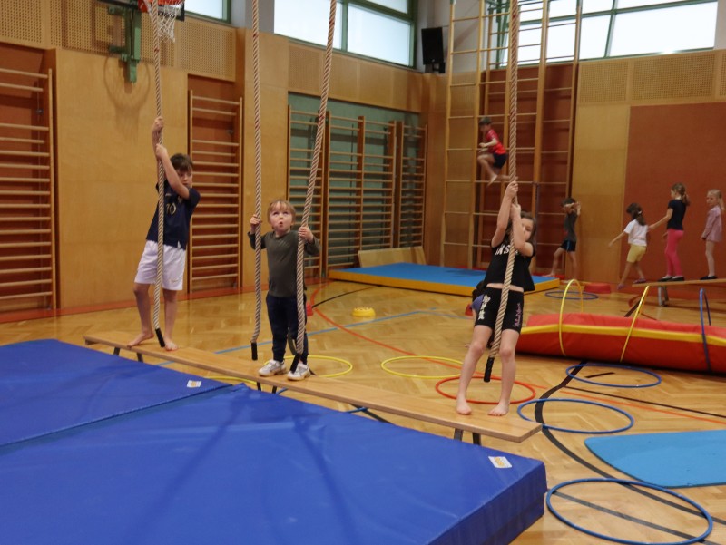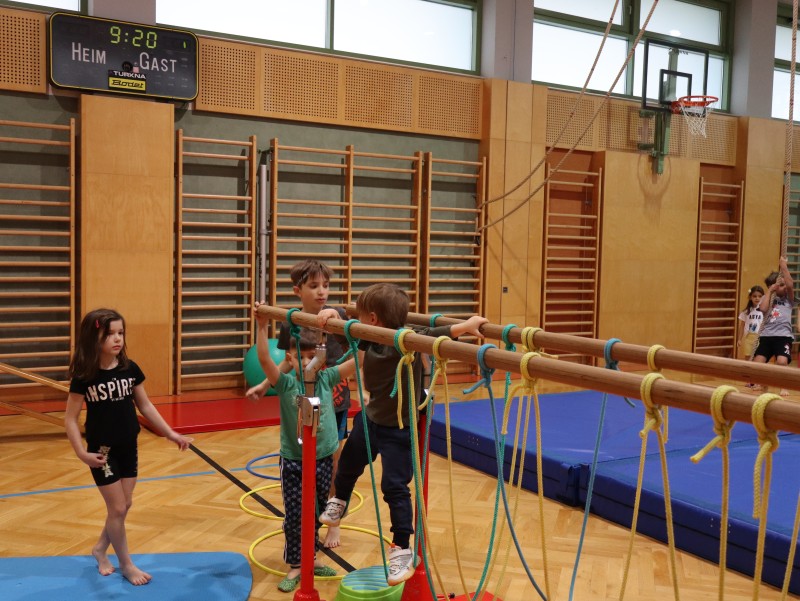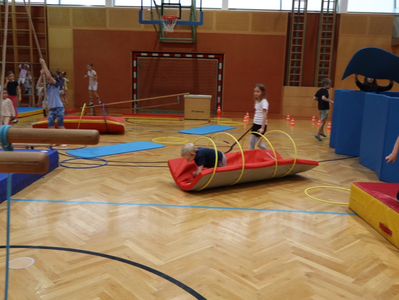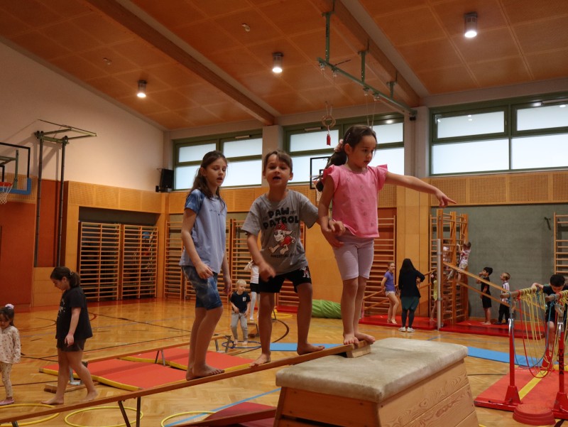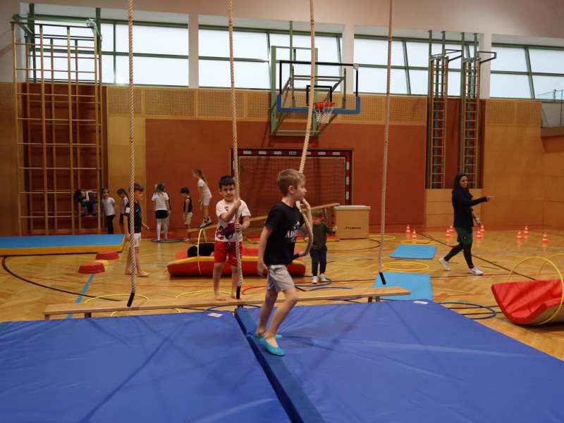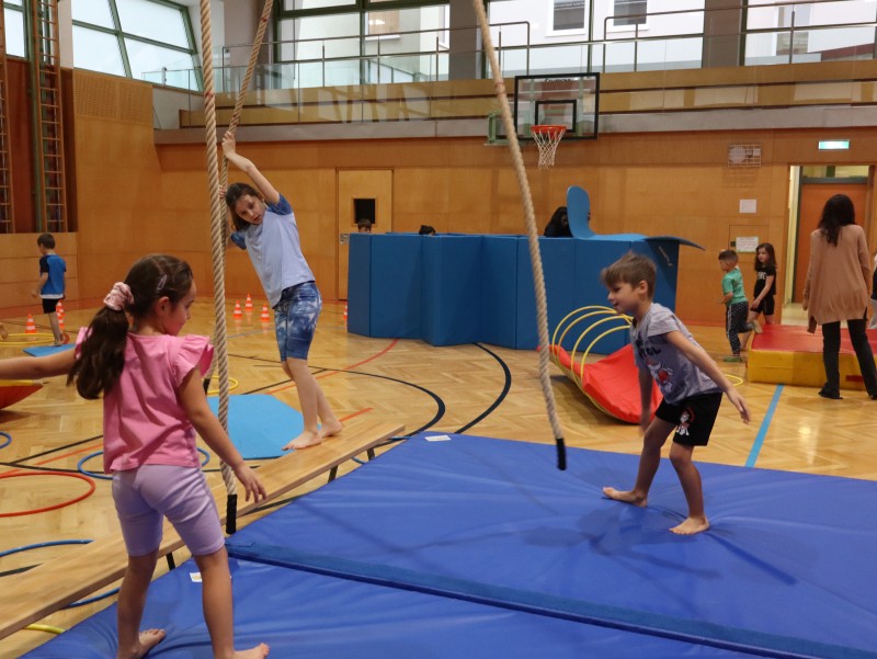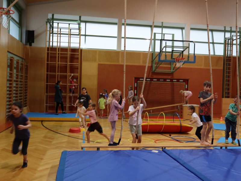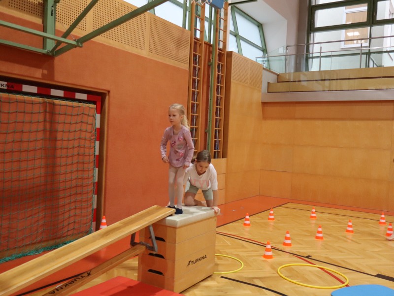 Heute hatten unsere 6-Ecke die Möglichkeit, an einer Turnstunde in der Volksschule Möllersdorf teilzunehmen. Nach dem gemeinsamen Aufwärmen konnten die Kinder in der festlich gestalteten Weihnachtsbewegungslandschaft ihre Kräfte und Fähigkeiten ausprobieren.