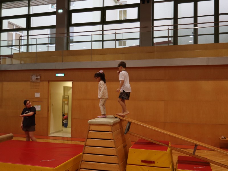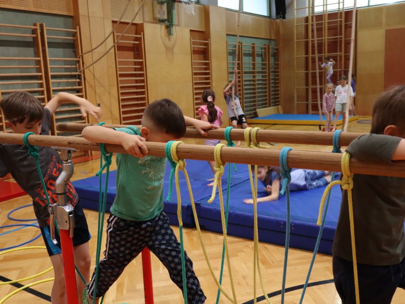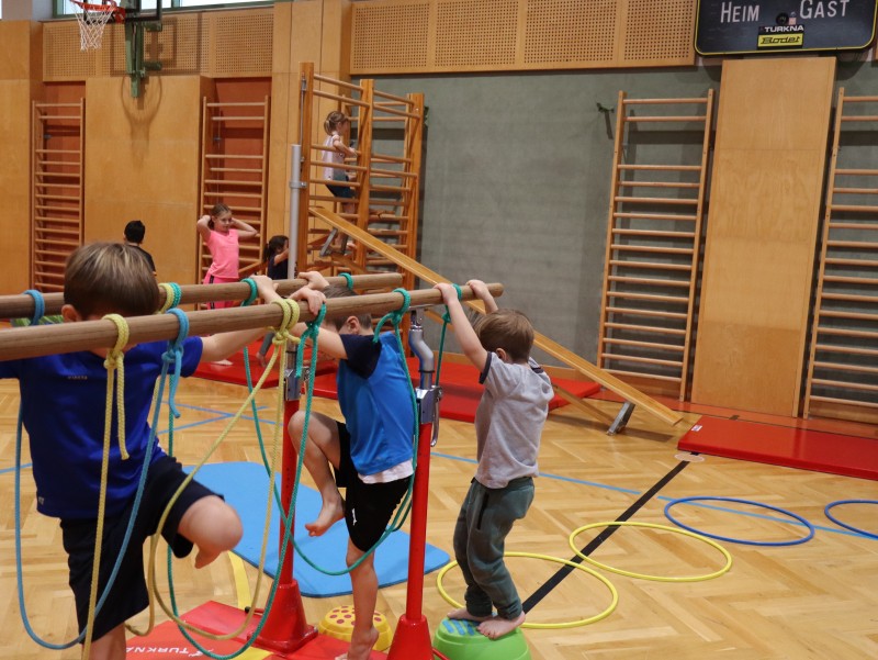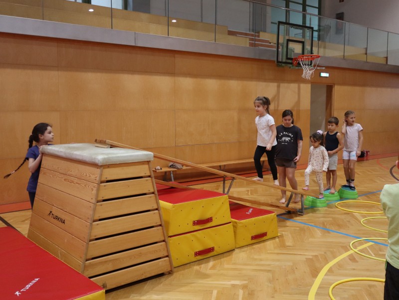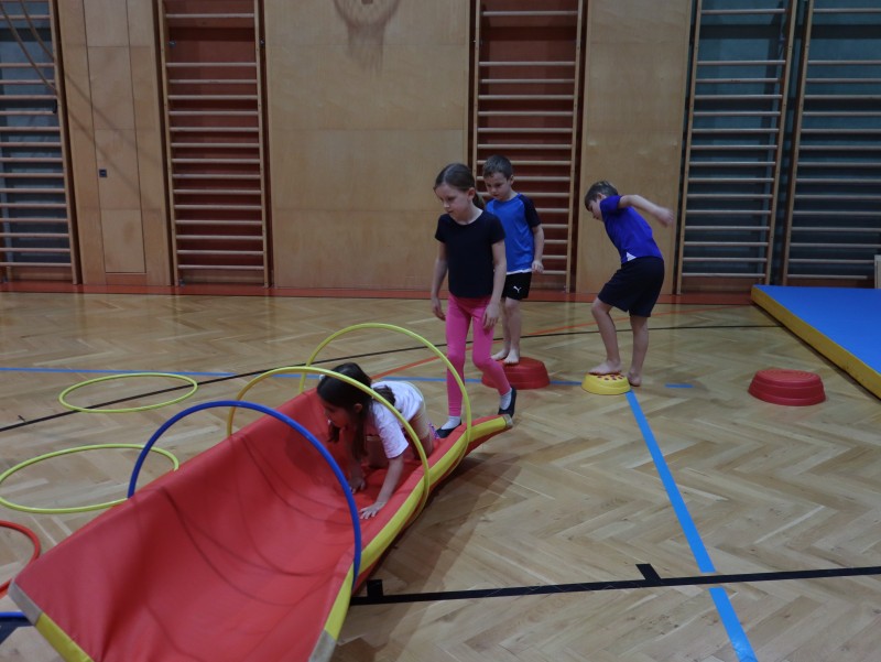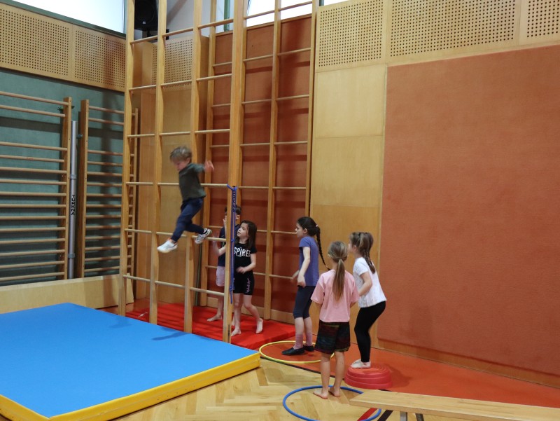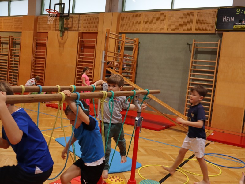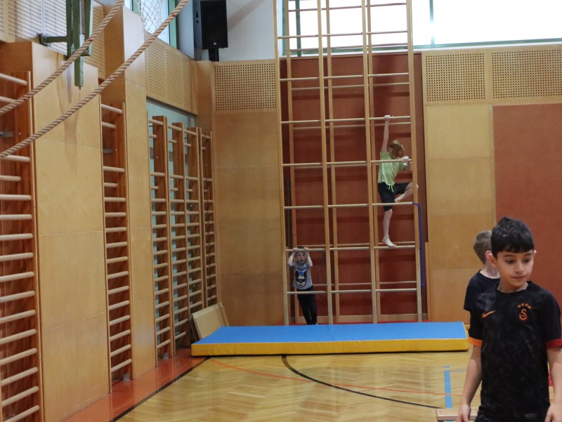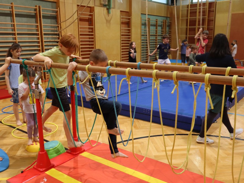 Heute hatten unsere 6-Ecke die Möglichkeit, an einer Turnstunde in der Volksschule Möllersdorf teilzunehmen. Nach dem gemeinsamen Aufwärmen konnten die Kinder in der festlich gestalteten Weihnachtsbewegungslandschaft ihre Kräfte und Fähigkeiten ausprobieren.