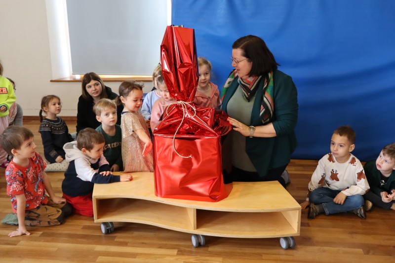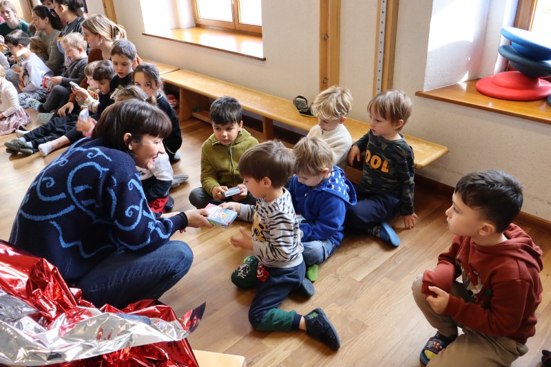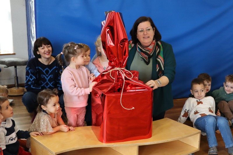 Zum Schluss hatte Frau Bürgermeisterin Divoky noch ein riesiges rotes Geschenk mit, dieses wurde gemeinsam ausgepackt und die Geschenke wurden an die strahlenden Kinder überreicht. Die Traiskirchner Stadtgemeinde wünscht allen Kindern frohe Weihnachten und die Schlössl Kinder bedanken sich herzlichst für das Geschenk.