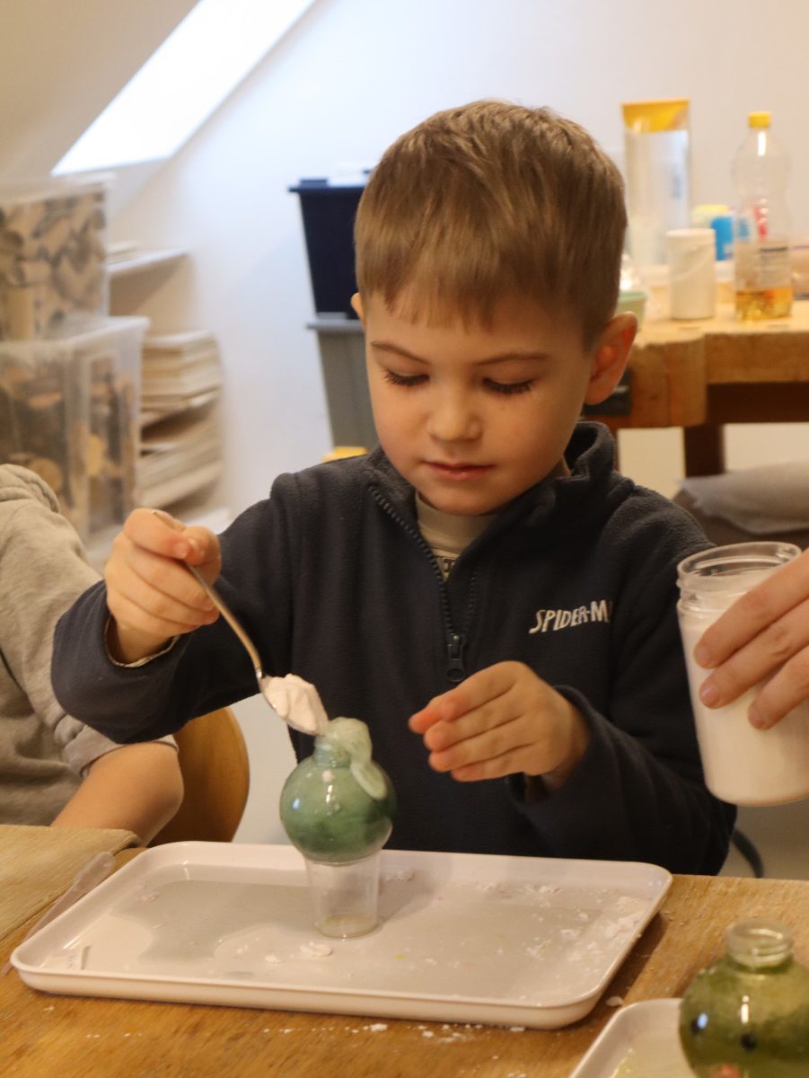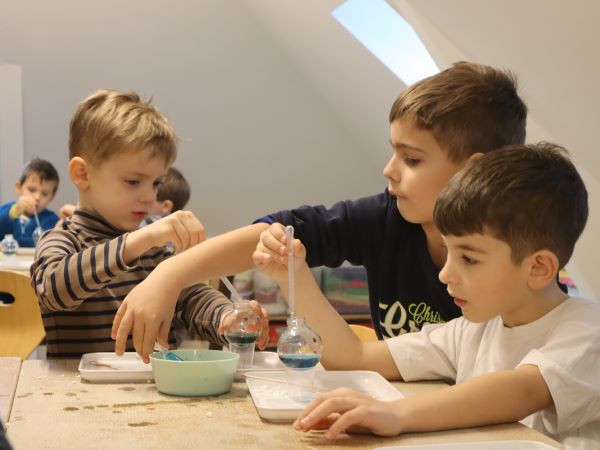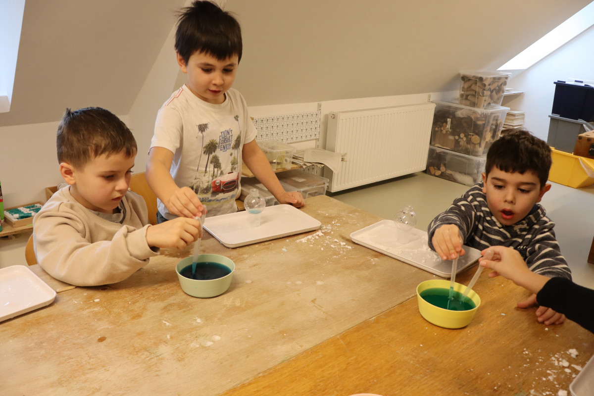 Wir besuchten auch das KALO, wo die Kinder die Möglichkeit hatten, drei verschiedene Experimente selbstständig auszuprobieren. Durch aktives Forschen, Beobachten und gemeinsames Nachdenken konnten sie erste naturwissenschaftliche Erfahrungen sammeln und ihre Neugier sowie ihr entdeckendes Lernen weiterentwickeln.