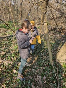 In der Au angekommen, wurden wir wieder von unserem „alten Bekannten“ begrüßt – dem Eichhörnchen, das sich flink durch die Bäume bewegte. Auch sonst gab es wieder viel zu entdecken: Enten, verschiedene Vögel, Marienkäfer, Regenwürmer, Bienen und Schnecken konnten wir beobachten.