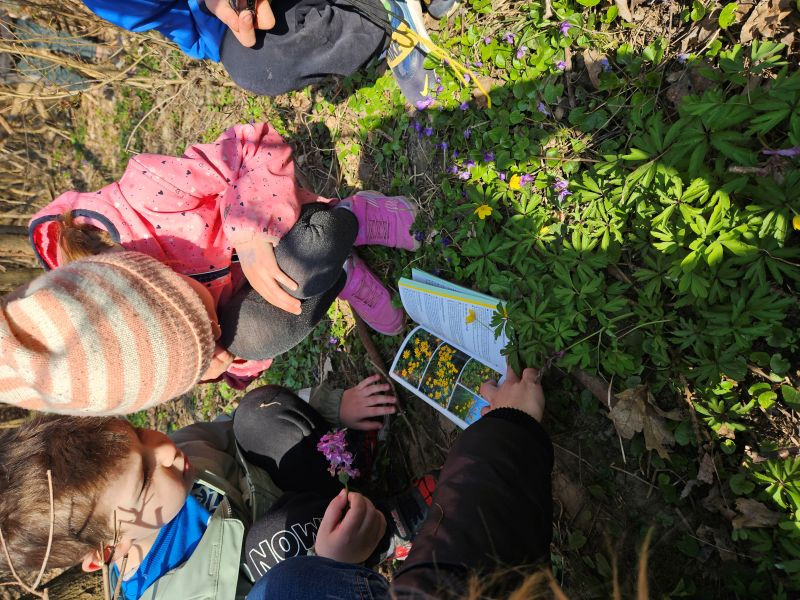 Da die Natur nun immer mehr erblüht, entdeckten wir auch einige uns unbekannte Blumen, die wir gemeinsam mit einem Bestimmungsbuch genauer unter die Lupe nahmen.