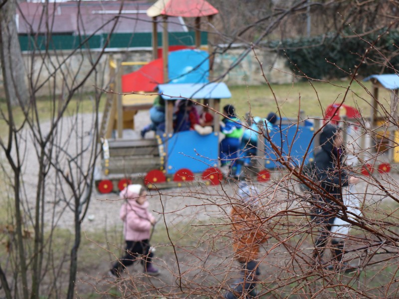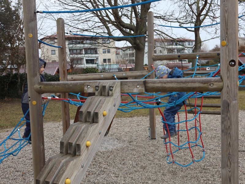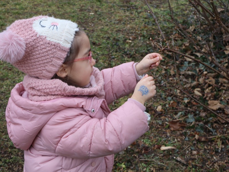 Unser Weg führte uns schließlich bis zum Kirchplatz-Spielplatz, wo wir eine kleine Pause einlegten. Dabei entdeckten wir erste Zeichen des Frühlings! An manchen Ästen waren bereits kleine Knospen zu sehen – ein Zeichen dafür, dass die Natur sich langsam auf das Erwachen aus dem Winterschlaf vorbereitet. Die Kinder beobachteten aufmerksam, wie feine Wassertropfen an den Zweigen glitzerten, während der Regen den Boden mit frischer Feuchtigkeit versorgte.