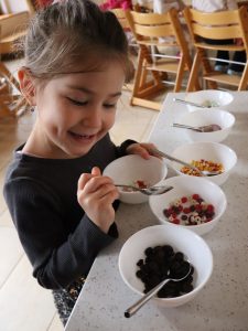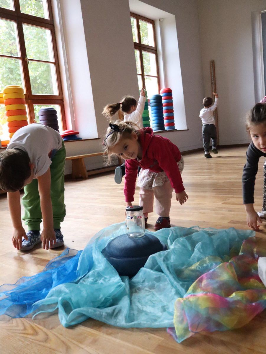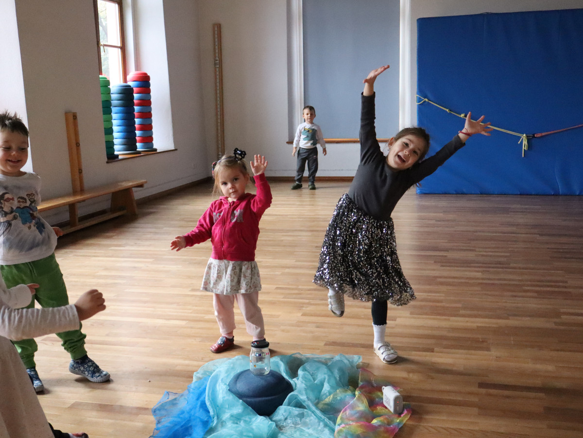 Zu Beginn konnte jedes Geburtstagskind einen eigenen kleinen Kuchen backen. Während der Duft aus der Küche schon Vorfreude weckte, tanzten die Kinder fröhlich zu Geburtstagsmusik und lauschten der Geschichte von Emma, die an ihrem Geburtstag mit ihren Freunden Herzenswünsche aussprach und sie symbolisch in die Welt hinaus schickte. Inspiriert von dieser Idee, durfte jedes Kind seinen eigenen bunten Stein auf ein großes Wunschglas kleben. Danach sprachen die Kinder – ganz leise oder laut – ihren persönlichen Herzenswunsch hinein. Als alle Wünsche gesammelt waren, gingen wir gemeinsam nach draußen, um sie symbolisch „davonfliegen“ zu lassen – ein stiller, berührender Moment, den die Kinder mit leuchtenden Augen begleiteten.