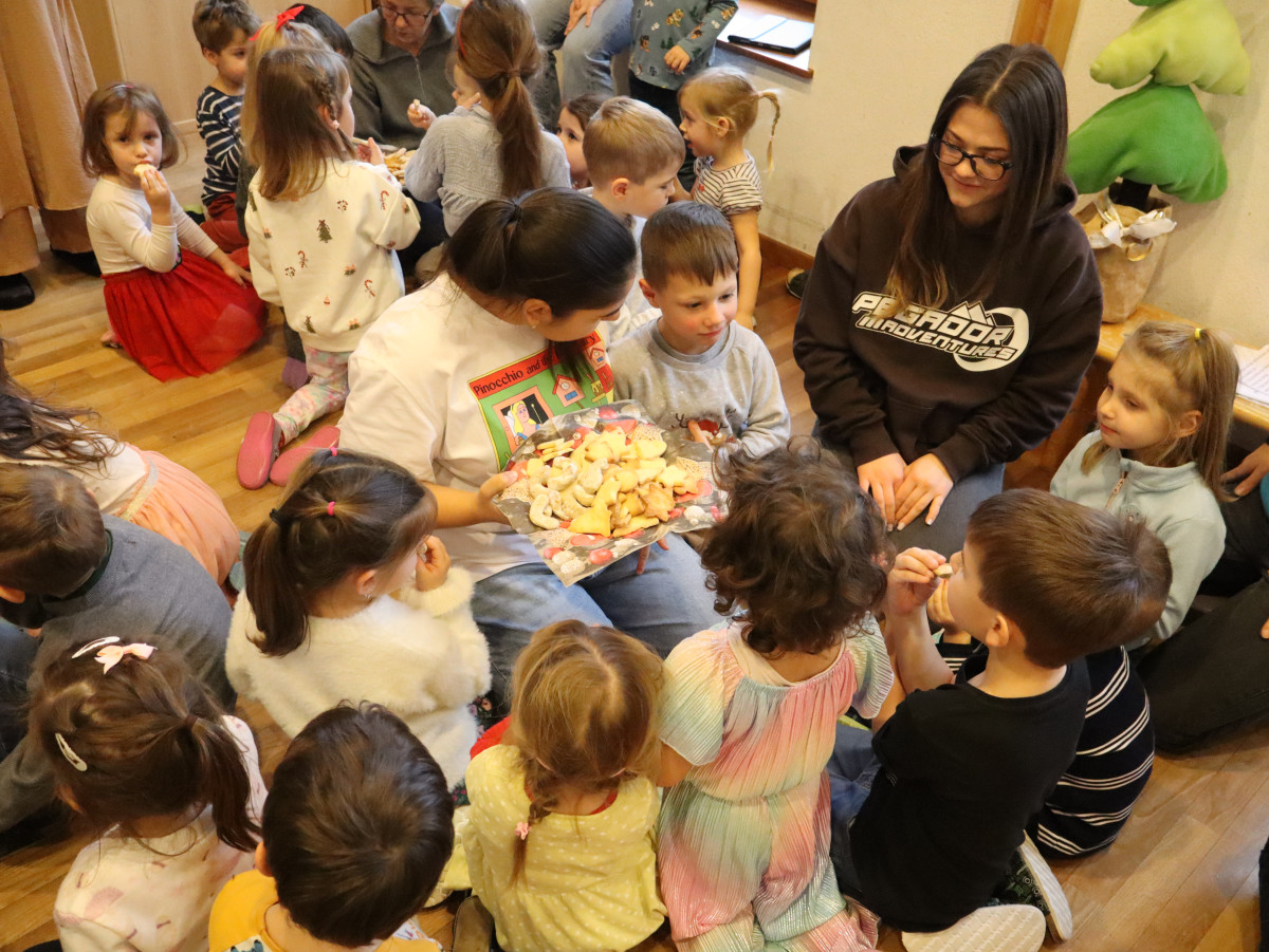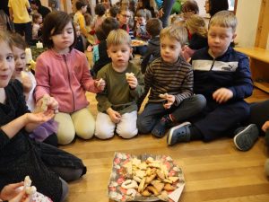 Im Anschluss konnten die Kinder die selbst gebackenen Kekse essen und es wurden noch einige Weihnachtslieder gemeinsam gesunden.