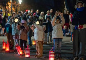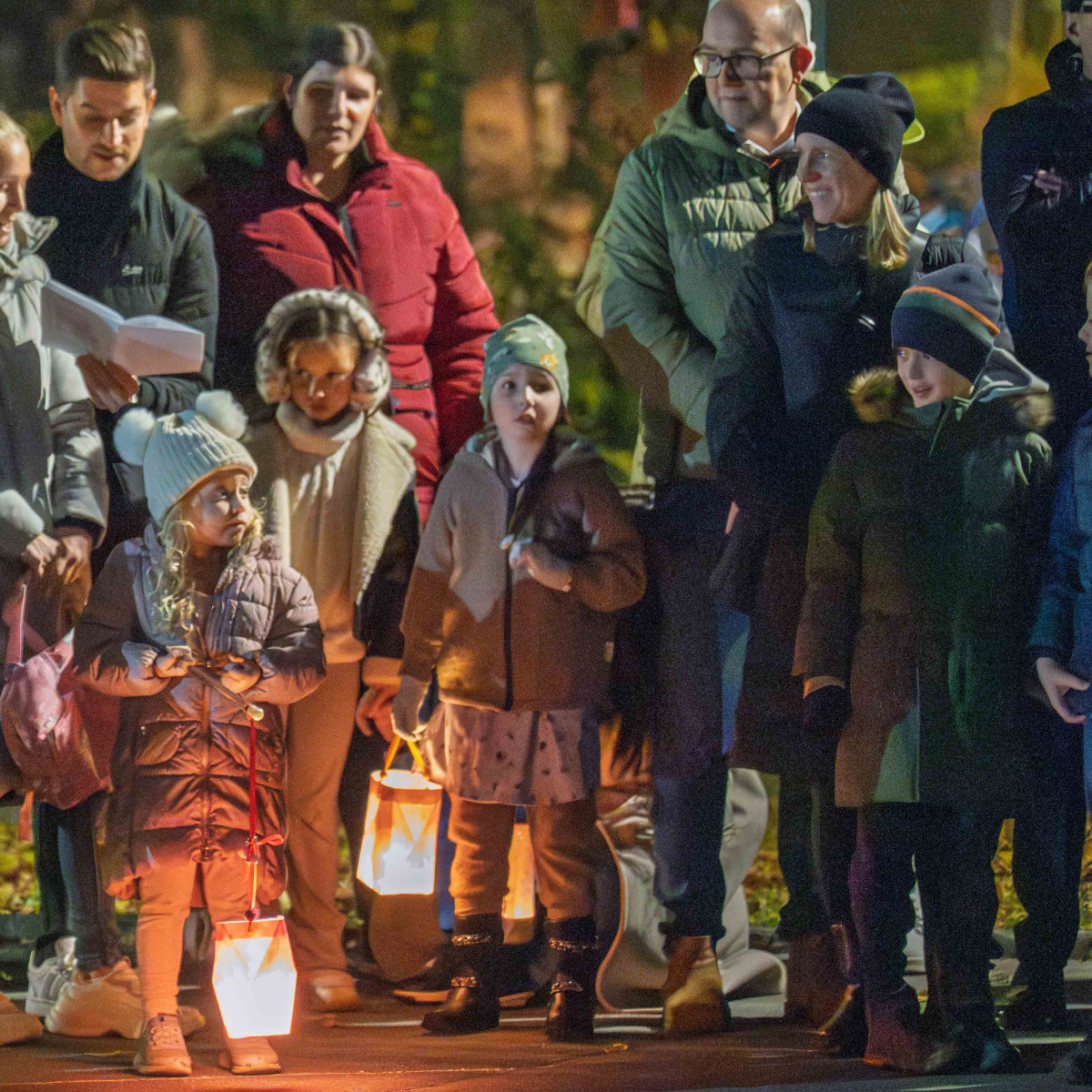 Ganz traditionell feierten wir am Dienstag 11.11.2025 wieder unser Martinsfest im Stadtpark. Gemeinsam sangen wir unseren Lieder. Die Rainbow Kids präsentierten einen Tanz und die Fünfecke inszenierten für uns die Martinslegende. Nach diesem festlichen Auftakt, durfte natürlich auch der Laternenumzug nicht fehlen und im Anschluss daran konnten endlich die guten Lagengebäck Stücke geteilt werden, diese hatten die Kinder selbst gebacken und sie schmeckten köstlich. Selbstgemachter Kinderpunsch rundete die Feierlichkeit noch ab.
