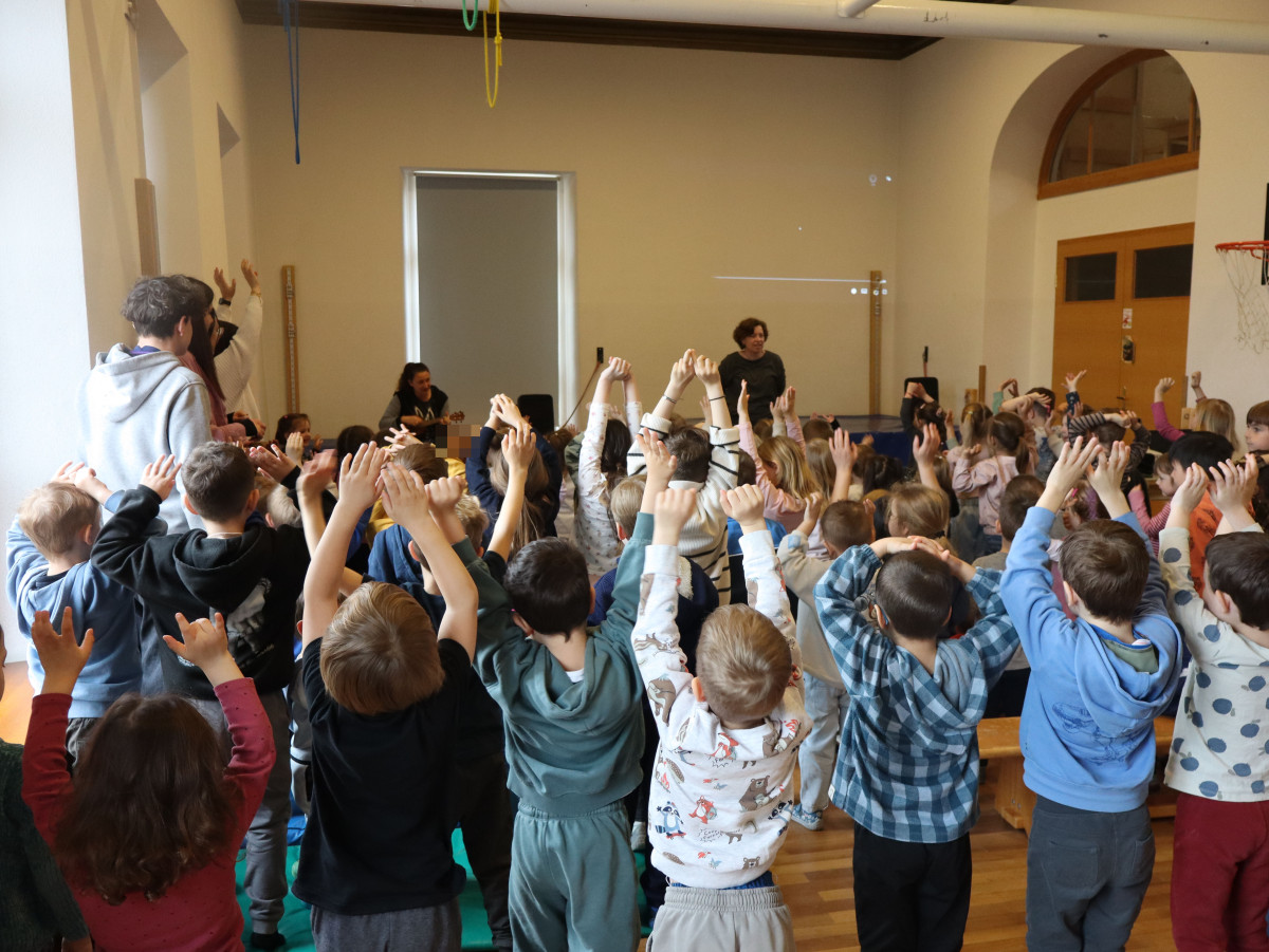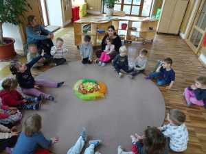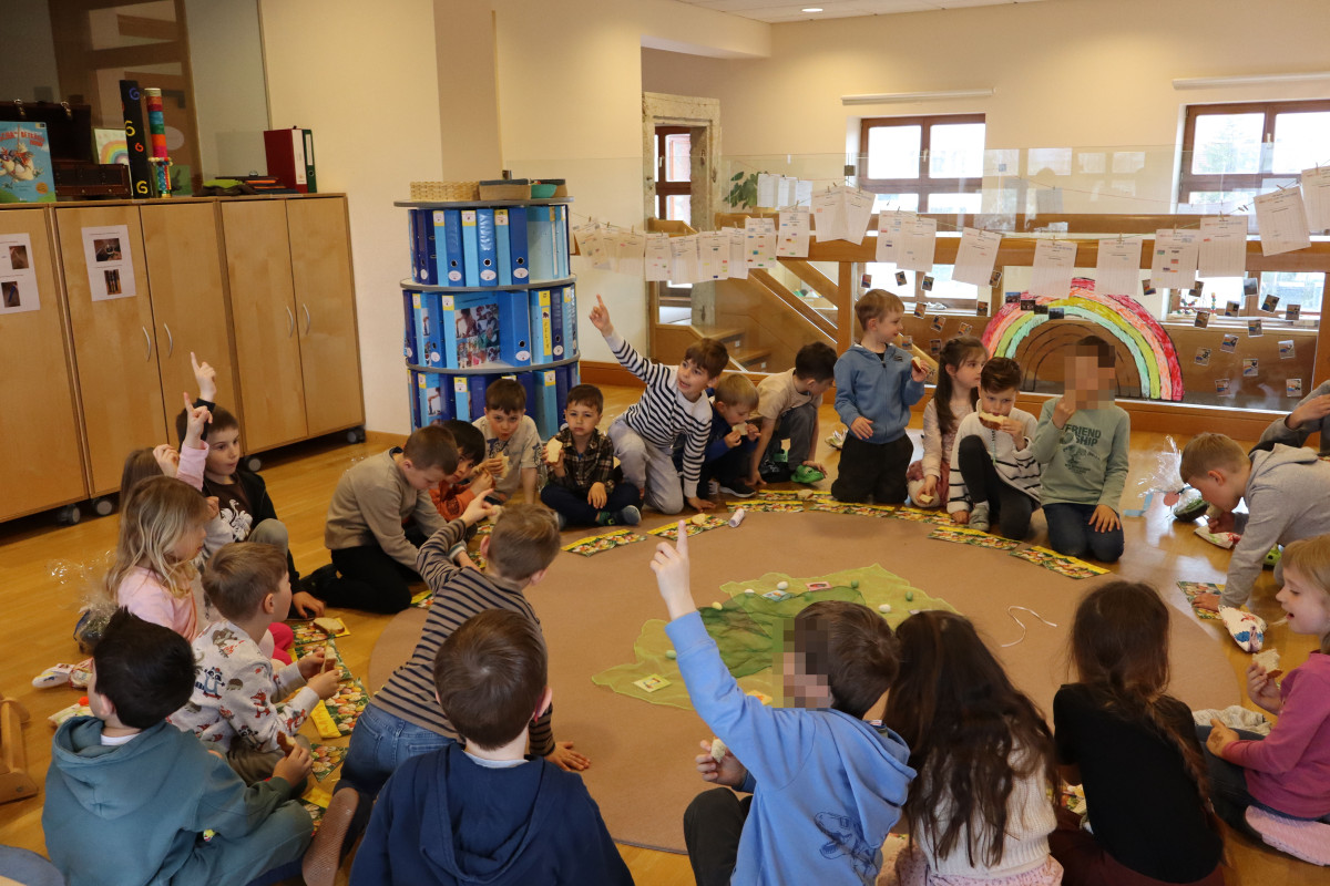 Im Anschluss daran wurde es aktiv: Bei einem fröhlichen Bewegungslied konnten sich alle Kinder gemeinsam austoben und in Schwung kommen.