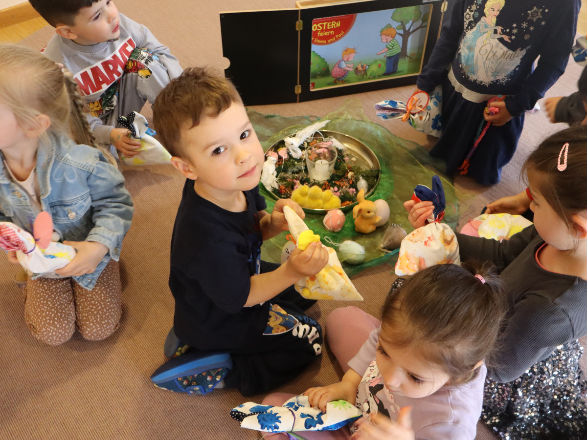 Danach ging es in die jeweiligen Peergroups. Dort wartete bereits ein besonderes Highlight auf die Kinder – die Suche nach den liebevoll versteckten Osternestern. Mit viel Begeisterung und leuchtenden Augen machten sich alle auf die Suche und wurden schließlich fündig.