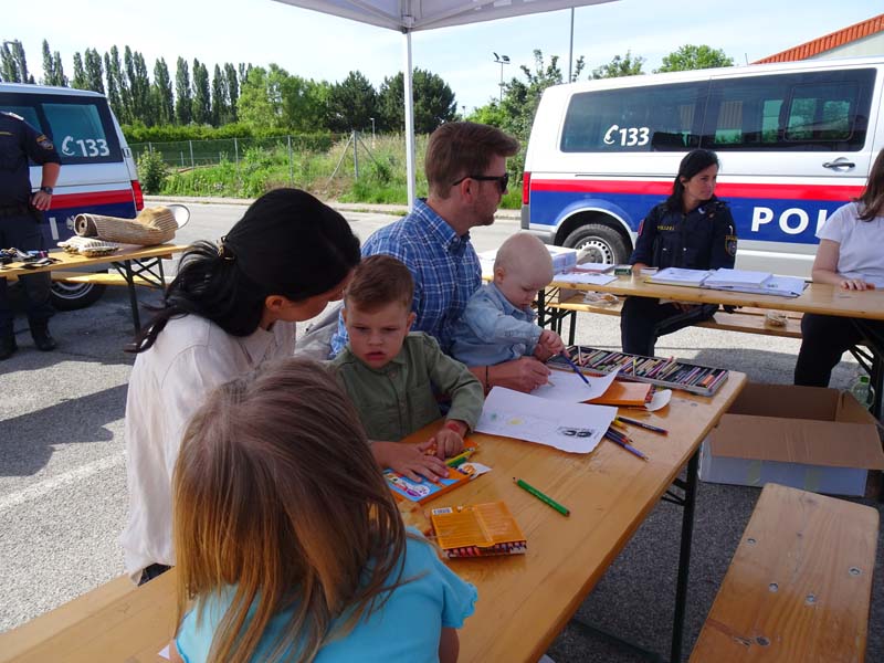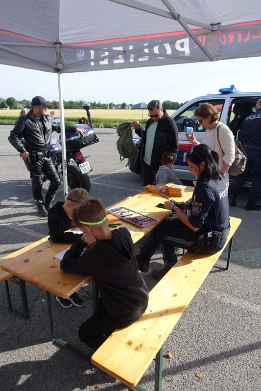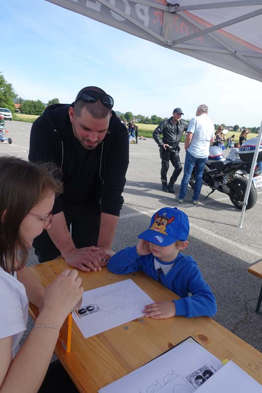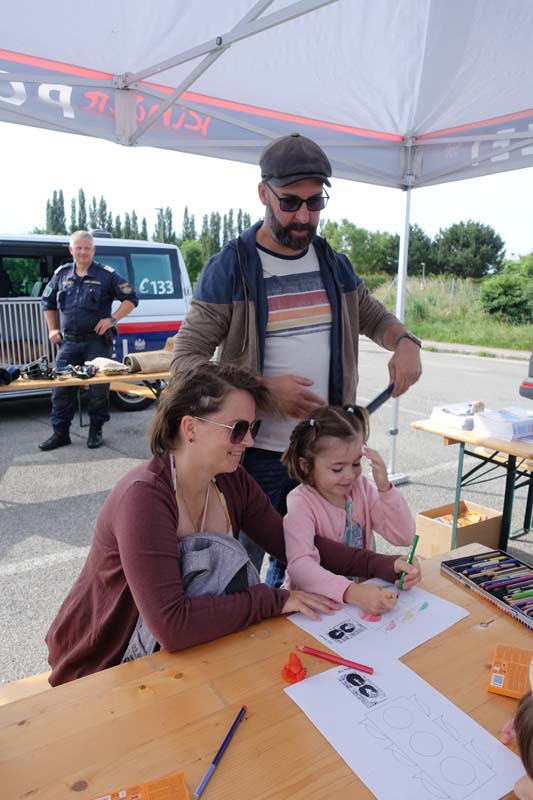 Wer lieber kreativ arbeitet, war bei der Polizei genau richtig, hier gab es Ausmalbilder und man konnte sich für die Kinderpolizei bewerben, dafür musste man wissen welche Farben eine Ampel hat und diese danach anmalen.