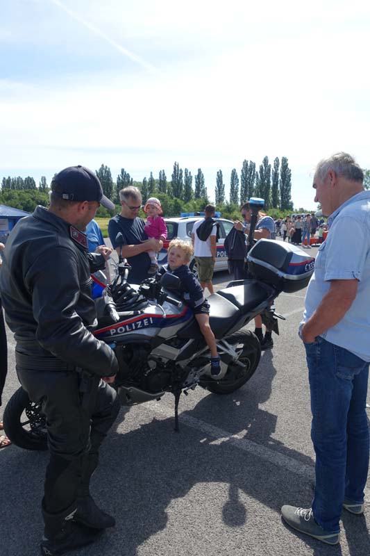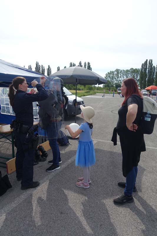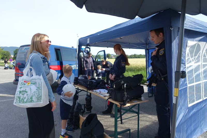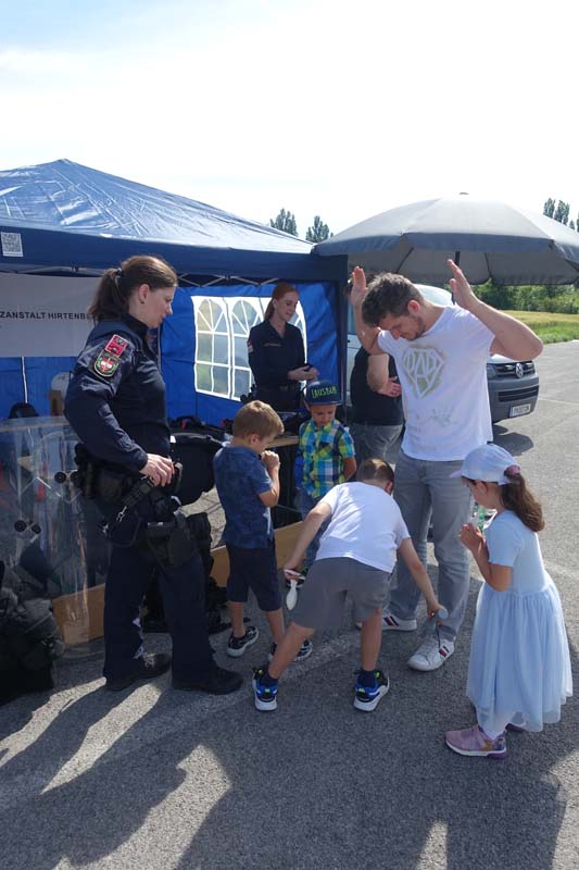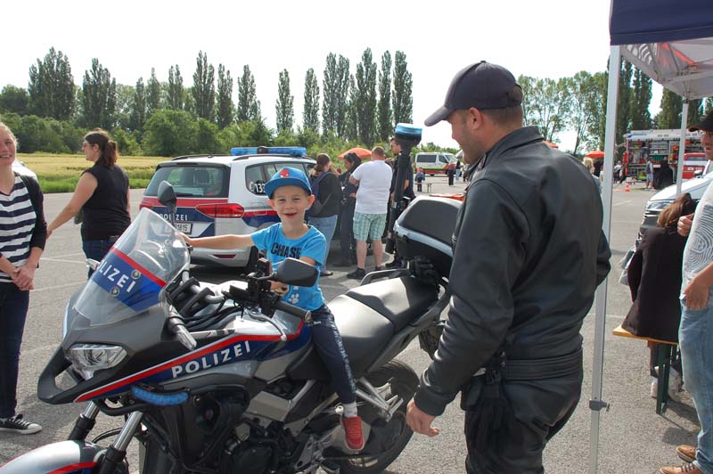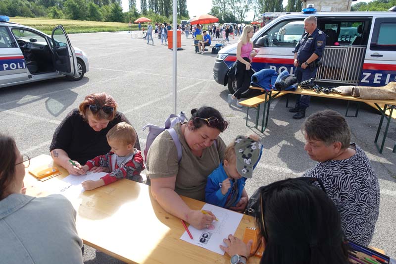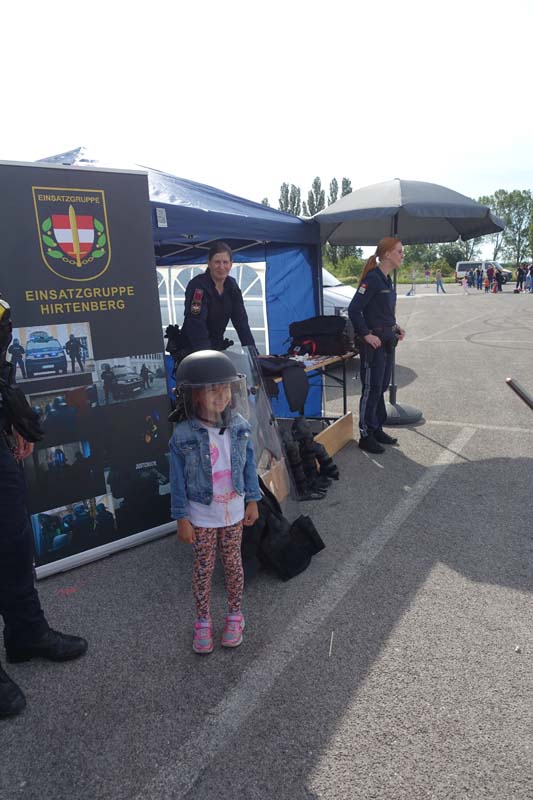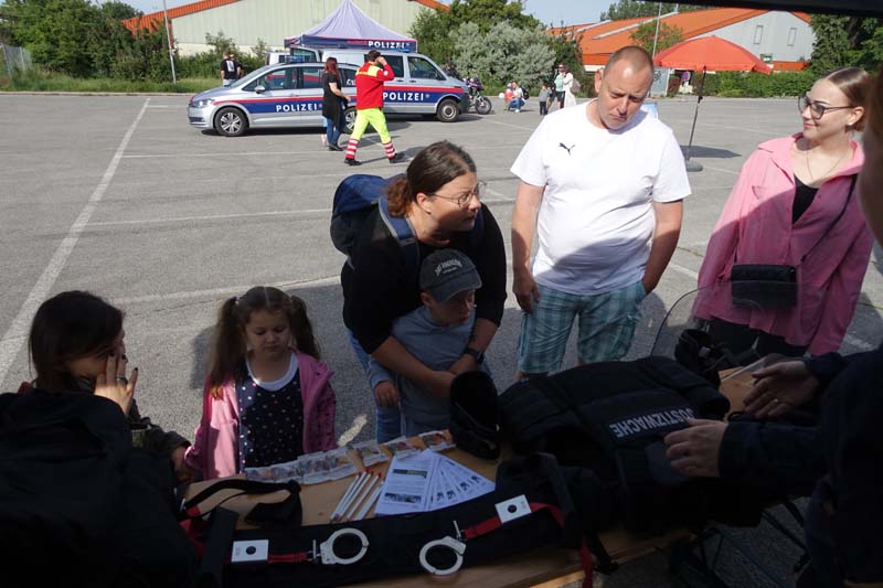 Heute gab es viele interessante Stationen zu bestaunen. Die Polizeiinspektion Traiskirchen, der Samariterbund, die Hundestaffel des Samariterbundes, die freiwillige Feuerwehr Möllersdorf, die Justizwache aus Hirtenberg und der Zivilschutzverein hatten sehr viel Ausrüstung zum Bestaunen und zum Ausprobieren mit.