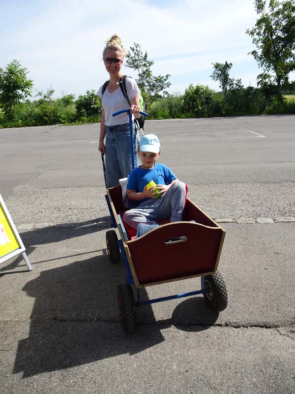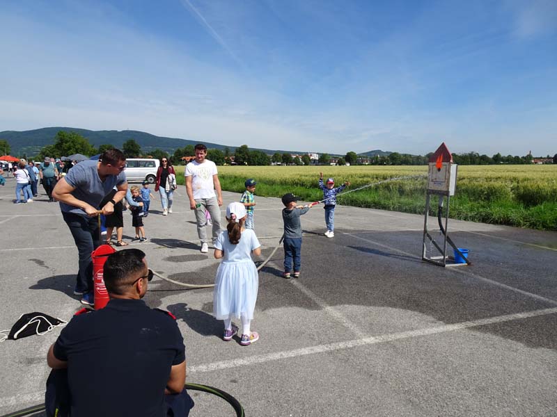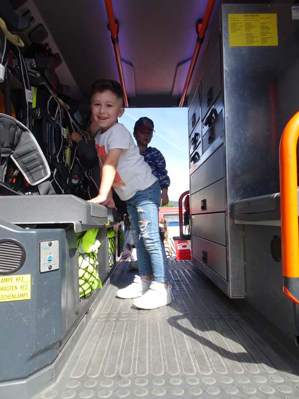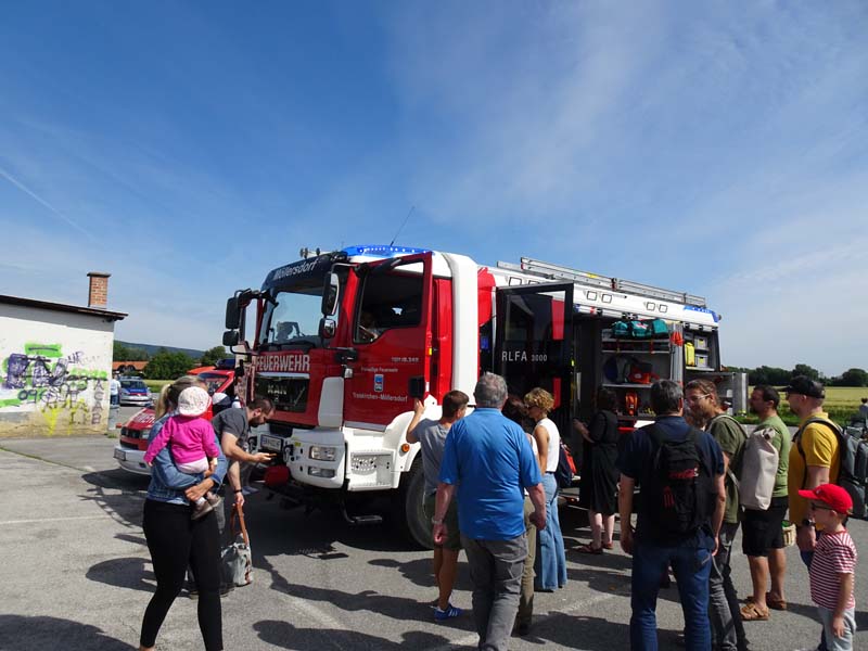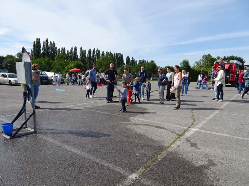 Die FF Möllersdorf ließ die Kinder das Auto erkunden, führe einen Spreizer vor und das Highlight war sicherlich das „Feuerlöschen“ mit der Kübelspritze.