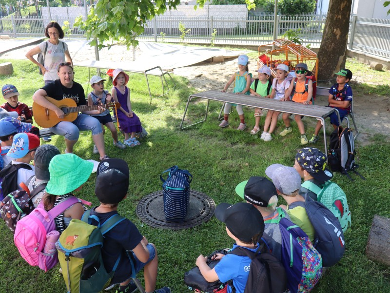 Voller Vorfreude machten wir uns auf den Weg in die Au, in jene vertraute grüne Welt, die für uns über viele Wochen ein Lern-, Spiel- und Lebensraum geworden ist. Unsere Sinne waren heute besonders wach: wir hörten das Zwitschern der Vögel und konnten die Amsel, die Meisen und andere gefiederte Freunde schon ganz sicher erkennen. Unsere Ohren waren geschult, unsere Augen wach – der Wald war uns vertraut wie ein guter Freund.