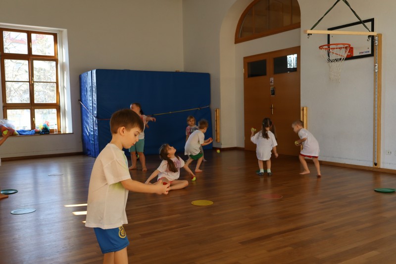 Heute ging es darum möglichst schnell auf optische Reize zu reagieren und genau die angegebene Rundenzahl zu laufen. Zum Schluss durften die Kinder auch wieder mit dem Prellen und Fangen der Tennisbälle Erfahrungen sammeln.