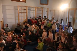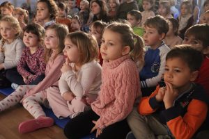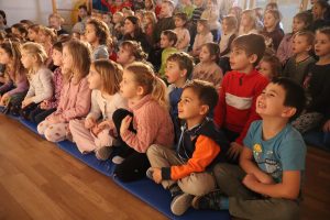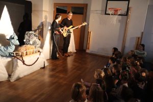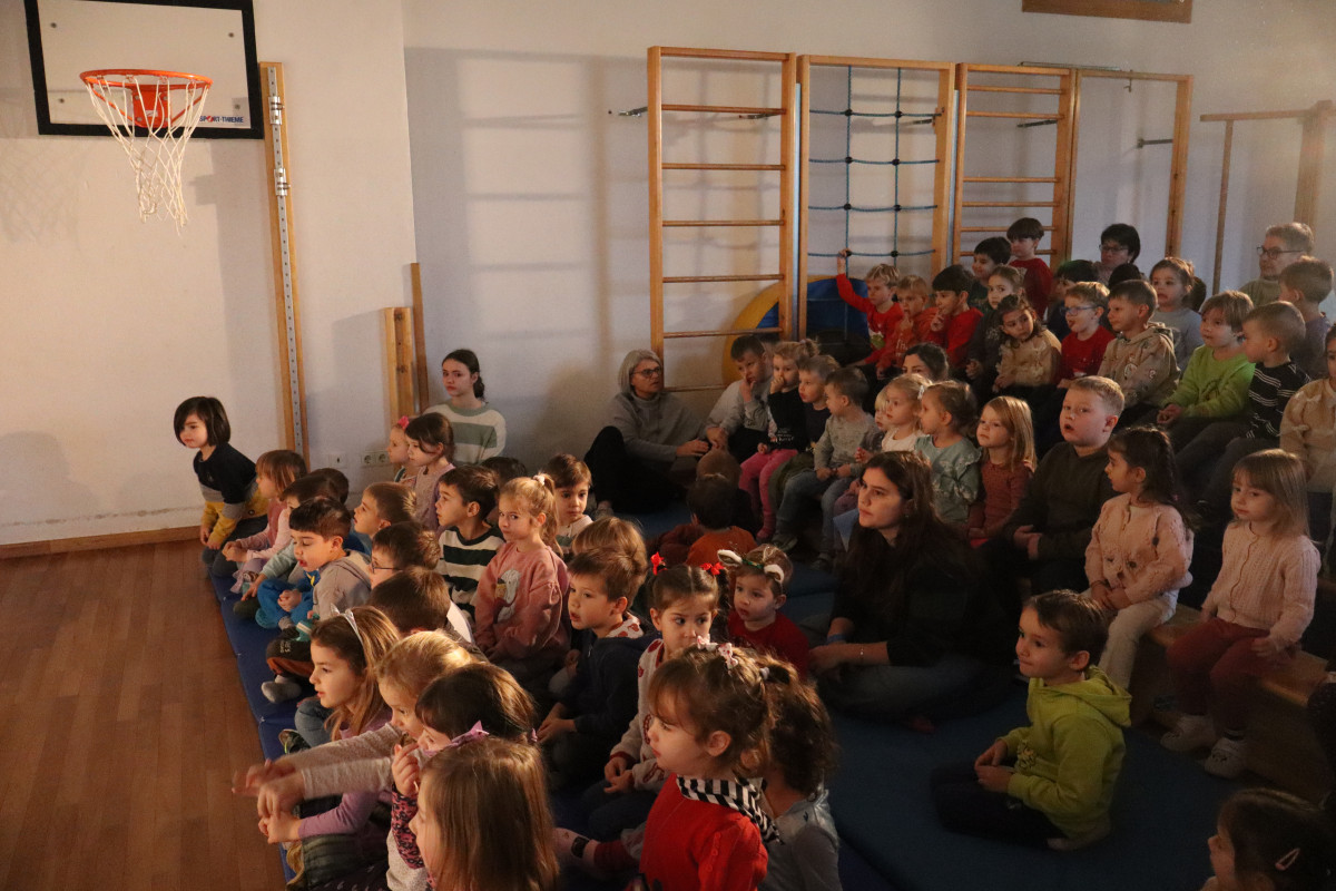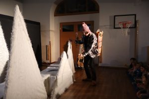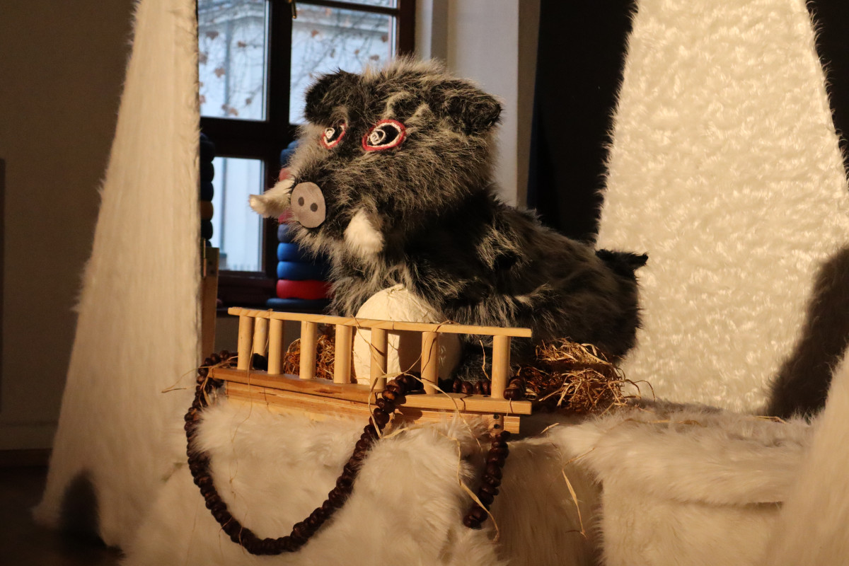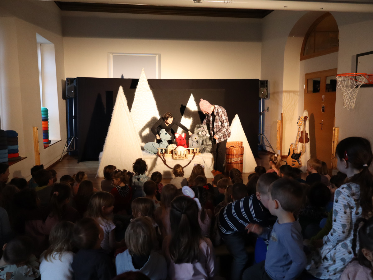 Am Montag, 15.12 2025 hatten wir besuch von einer sehr begabten Theatergruppe. Das Theaterstück hieß „Hr. Holle hört Weihnachten“, es wurde viel gelacht und gesungen und die Kinder genossen die Darbietung. Es ging darum, dass Waldtiere in der neuen Futterkrippe von Hr.Holle, plötzlich ein „Ei“ finden. So beginnen ein Wildschwein, ein Reh und ein Fuchs abwechselnd das Ei auszubrüten und suchen Frau Kuckuck, denn nur ihr kann das Ei ja gehören.