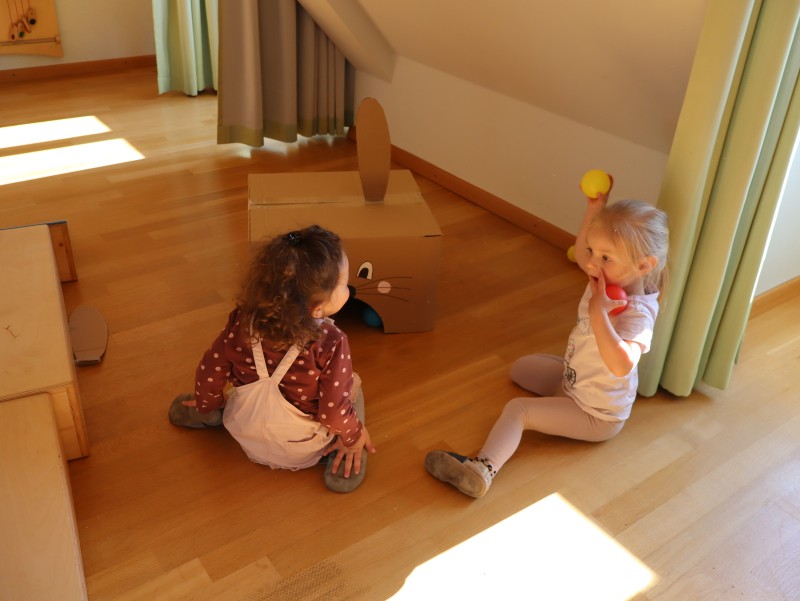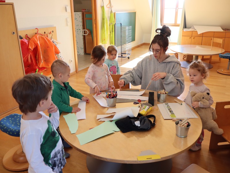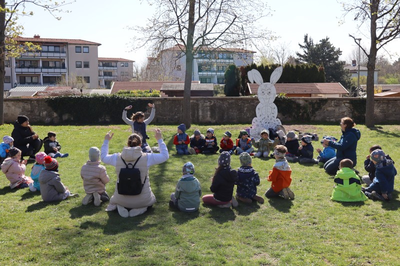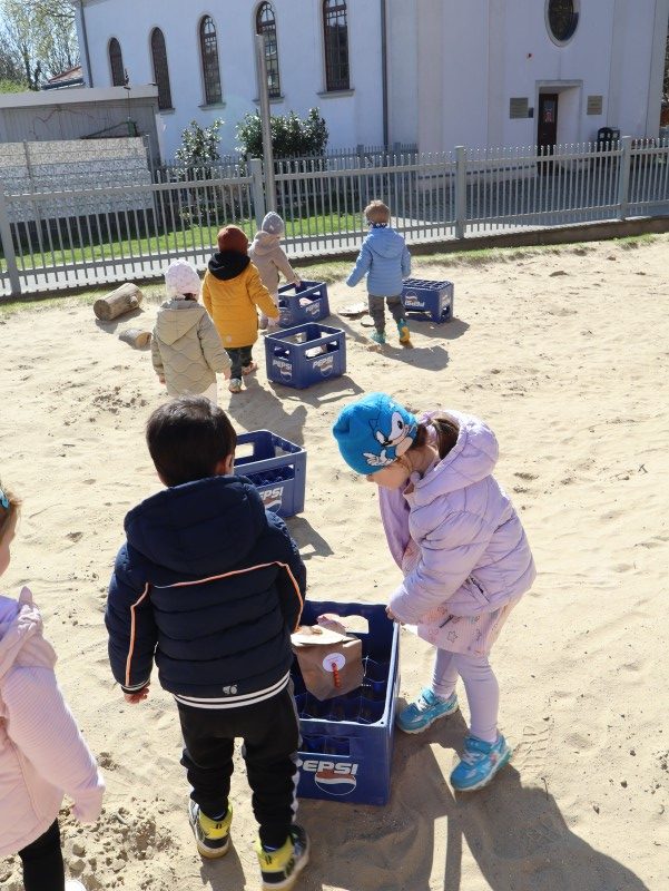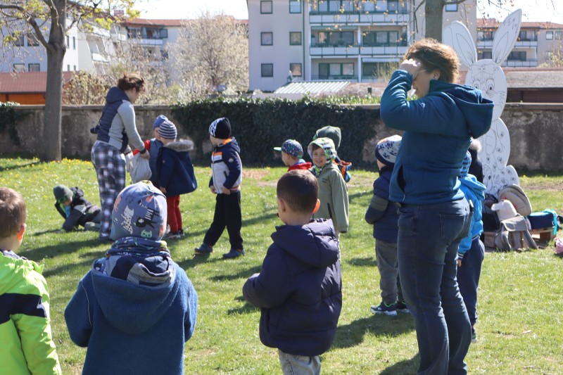 Im Kindergarten wurde unterdessen von den jüngsten des Hauses gespielt, Osterstationen ausprobiert und danach im Bewegungsraum noch gemeinsam gesungen.
