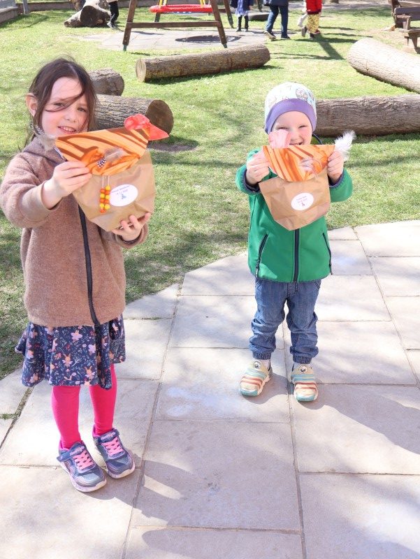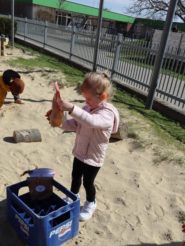 Der Osterhase hatte natürlich die diesjährigen Osterhühner der Kinder gut gefüllt im Garten versteckt, sodass jedes Kind sein Osterhuhn im Garten suchen konnte.
